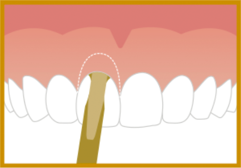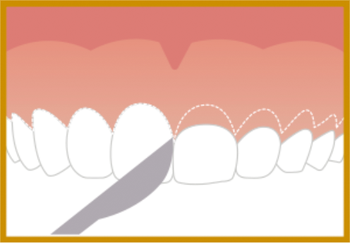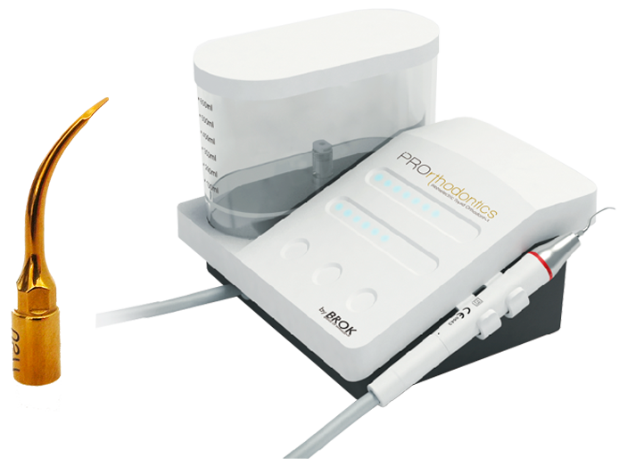 Se posiciona la cabeza del inserto con la superficie lisa apoyada en pieza dentaria. Activación del equipo presionando el pedal e introducir la cabeza del inserto que debe quedar cubierta por el tejido blando, 2mm bajo el borde gingival. Realizar movimientos en sentido mesio-distal (similar a un de limpia parabrisas), sacando continuamente el inserto para asegurar buena irrigación. Este movimiento permite la regularización del tejido óseo.